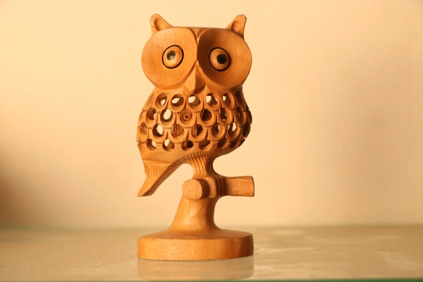 - Decorative Wooden Owl Figurine, Hand Carved, Golden Brown,3D Design Handicrafts Statue for Home Good Luck Vastu,Showpiece for Living Room Bedroom OfficeFigurine ideol Gift Item