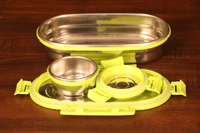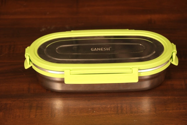 - GANESH Craze Stainless Steel Tiffin Lunch Box Container/Dabba with 4 Side Clip Lock Lid for Office & School Use/Food Grade/Air Tight/Easy to Carry/Leak Proof(650ml 1pc + 140ml 1 Pc) Green