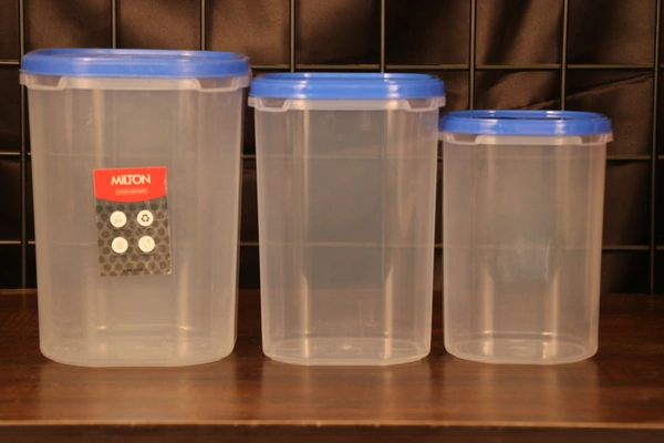 - MILTON Quadra Modular Multi-Purpose Plastic Containers with Lid, Set of 3 (6L, 8L, 12L) Kitchen Storage Container Set for Spices, Atta, Grains Organizers, Transparent Dabba, Blue