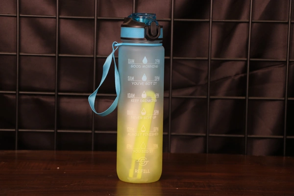 • SOLARA Sipper Water Bottle 1 Ltr with Motivational Time Marker, Leakproof Durable BPA Free Non-Toxic Tritan Water bottle for Adults, Gym, Kids School, Gifts and Office, Yellow Blue